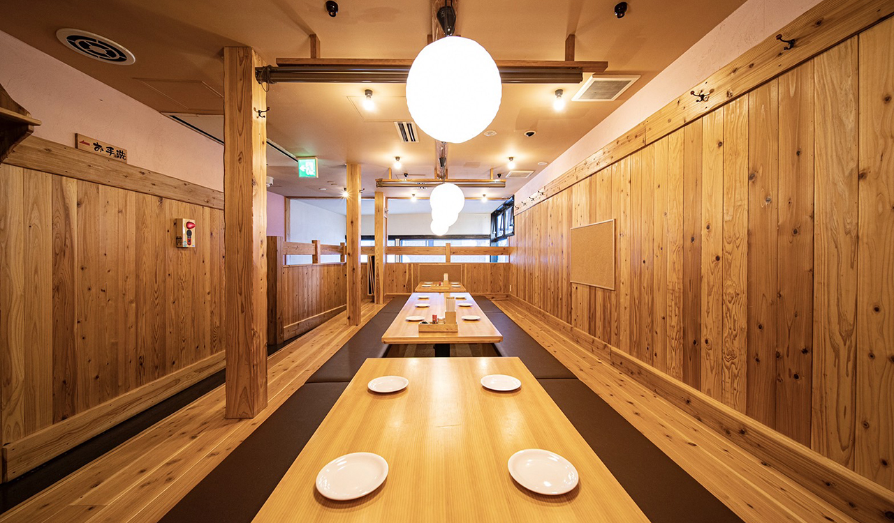 2階は、26名までの宴会に対応可能な掘りごたつの座敷をご用意しておりますので、友人同士、会社の仲間などと肩ひじ張らずに盛り上がれるカジュアルな雰囲気。目的やシーンに合わせて、ぜひご利用ください!